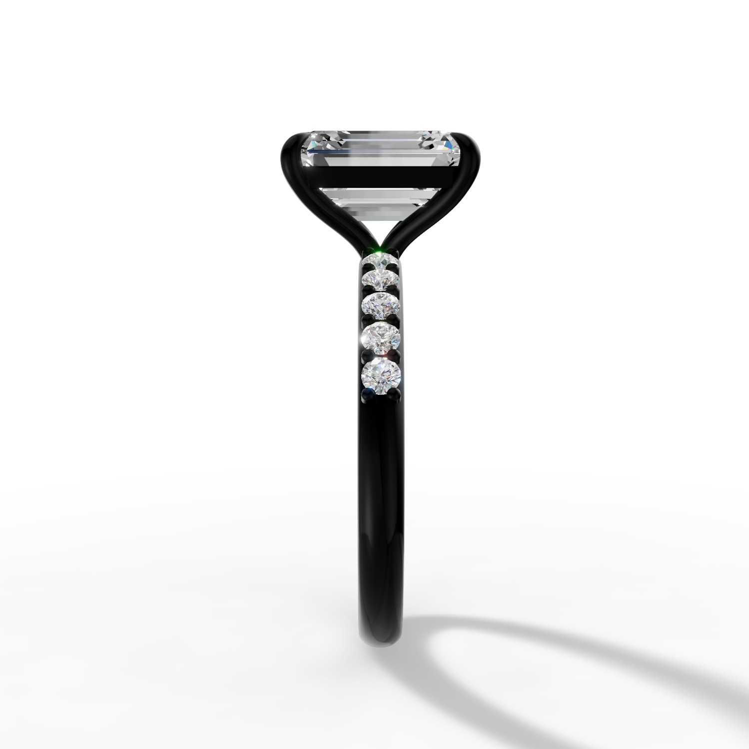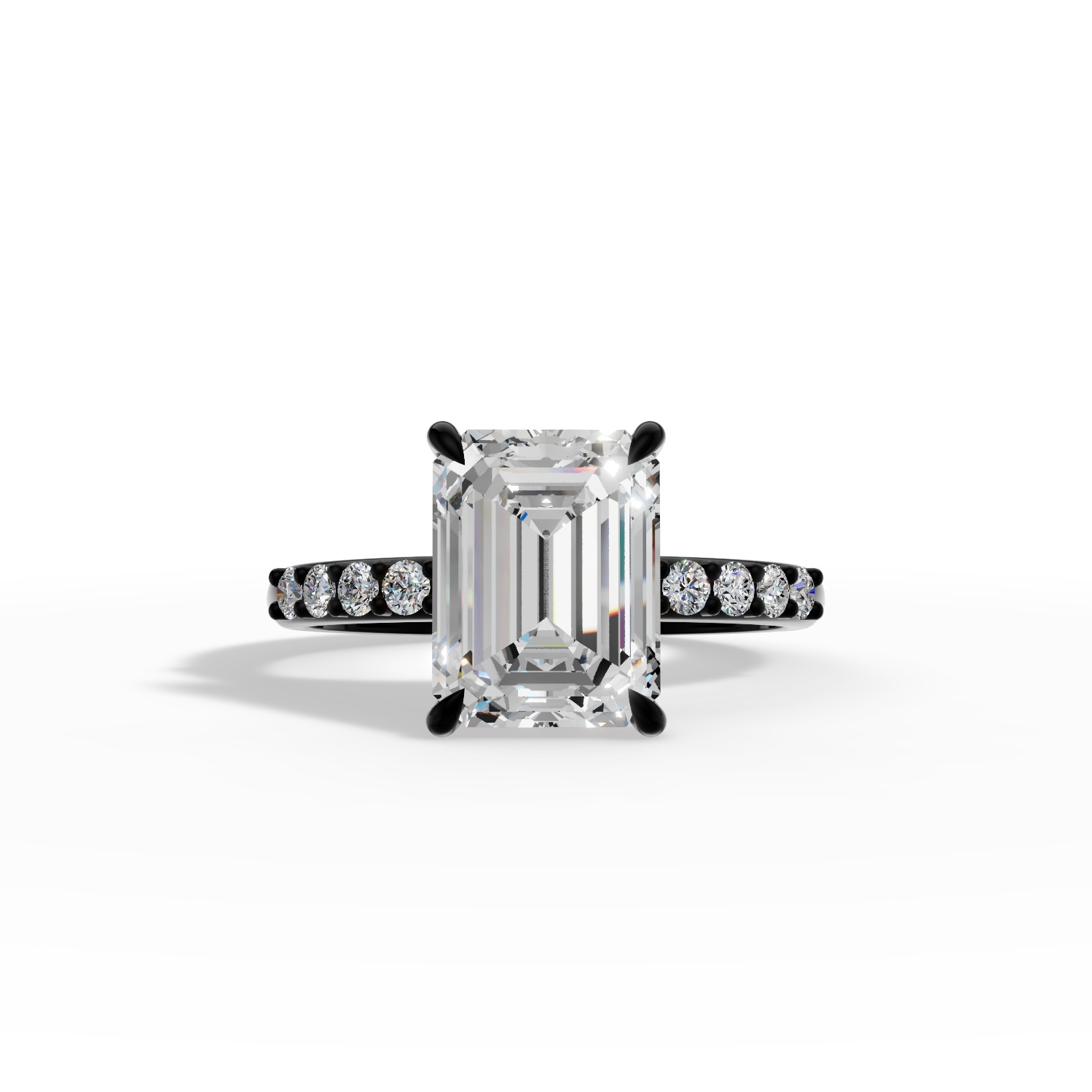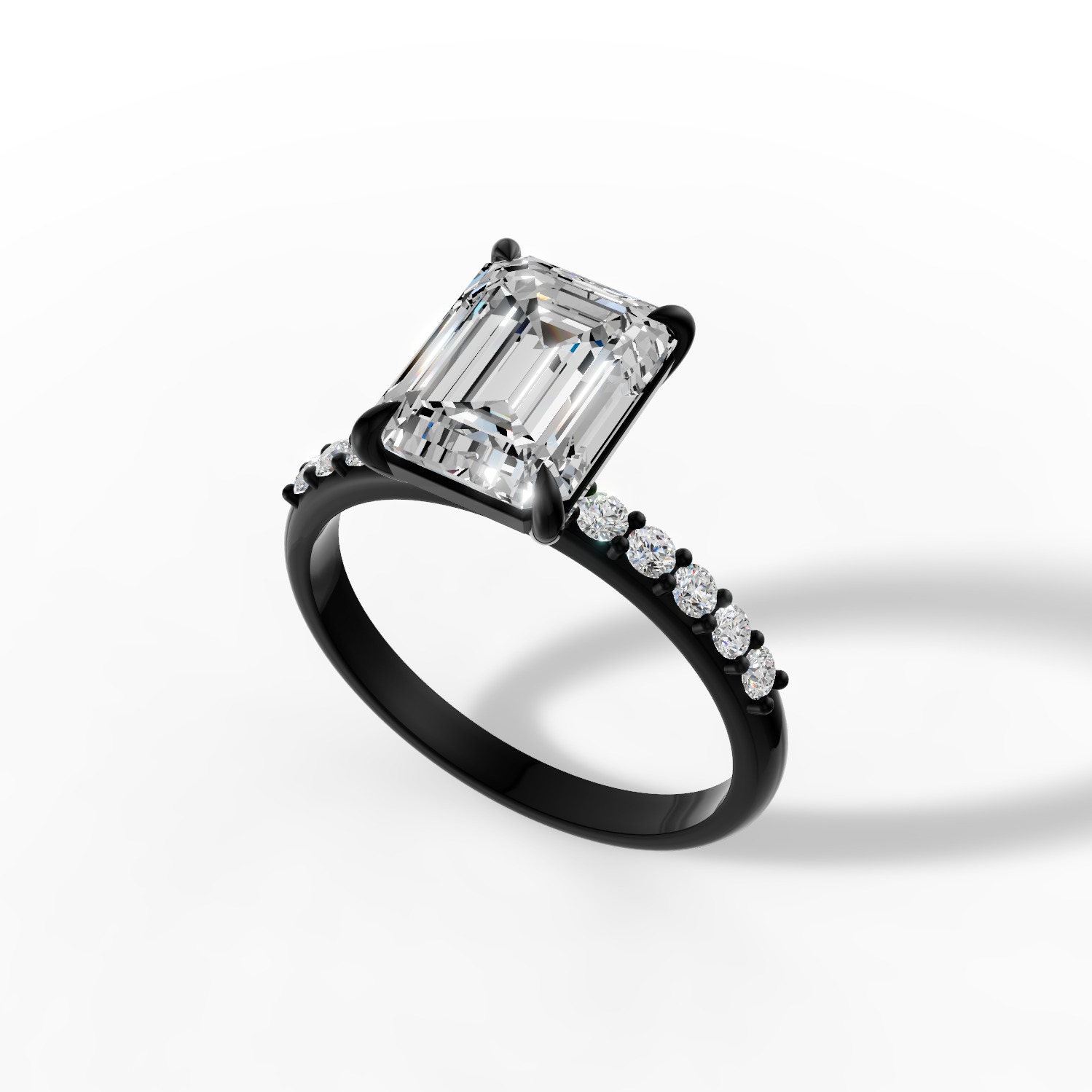Zakochaj się w pierścionku Anastasia – wyjątkowej biżuterii dla wyjątkowych kobiet. Diament o szlifie szmaragdowym jest stworzony dla fanów ponadczasowej elegancji oraz stylu old money. Obrączka z czarnego złota ozdobiona dziesięcioma drobnymi diamentami doskonale dopełnia kompozycję, tworząc efekt harmonii i klasy.