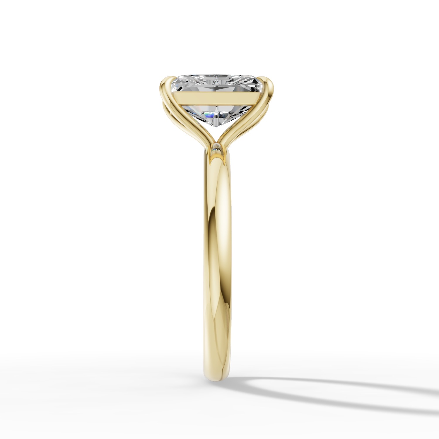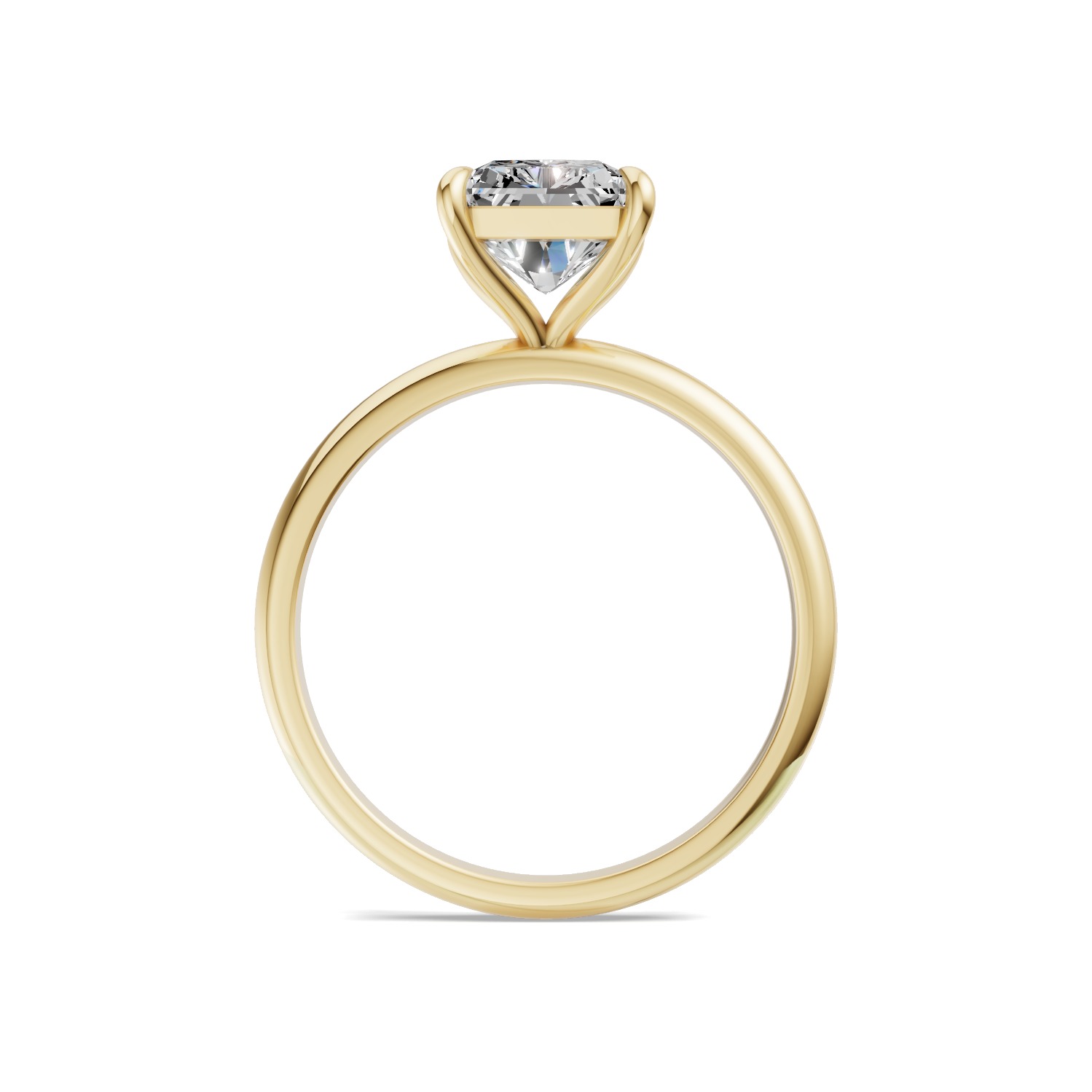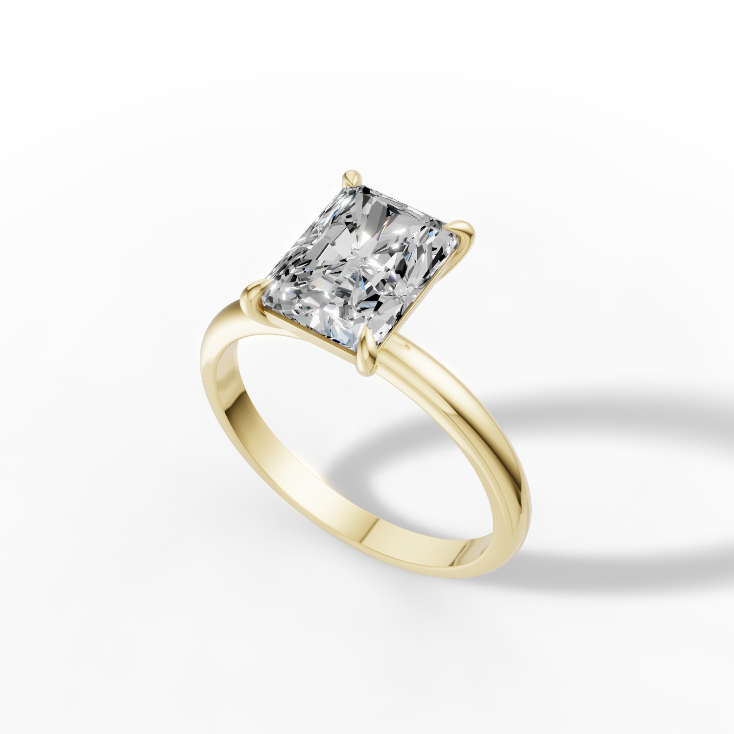 Model zachwyca centralnym diamentem o szlifie radiant oraz obrączką w kolorze żółtego złota.