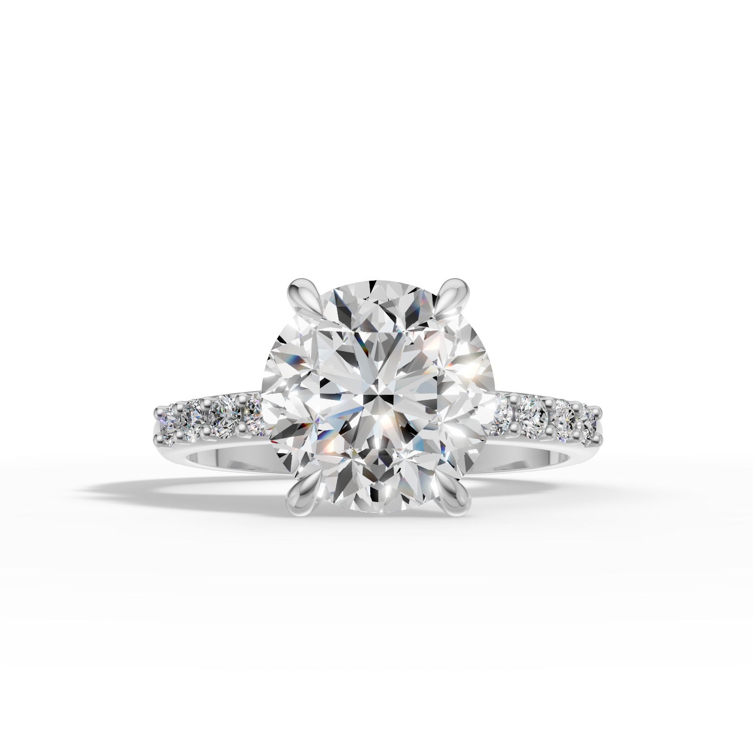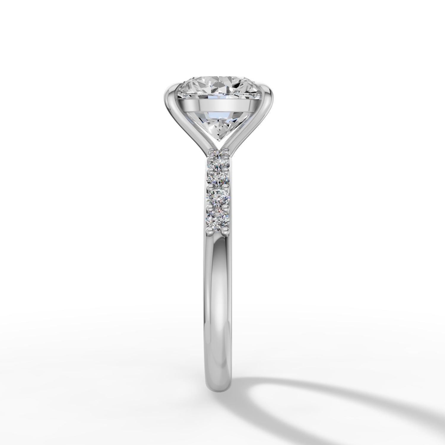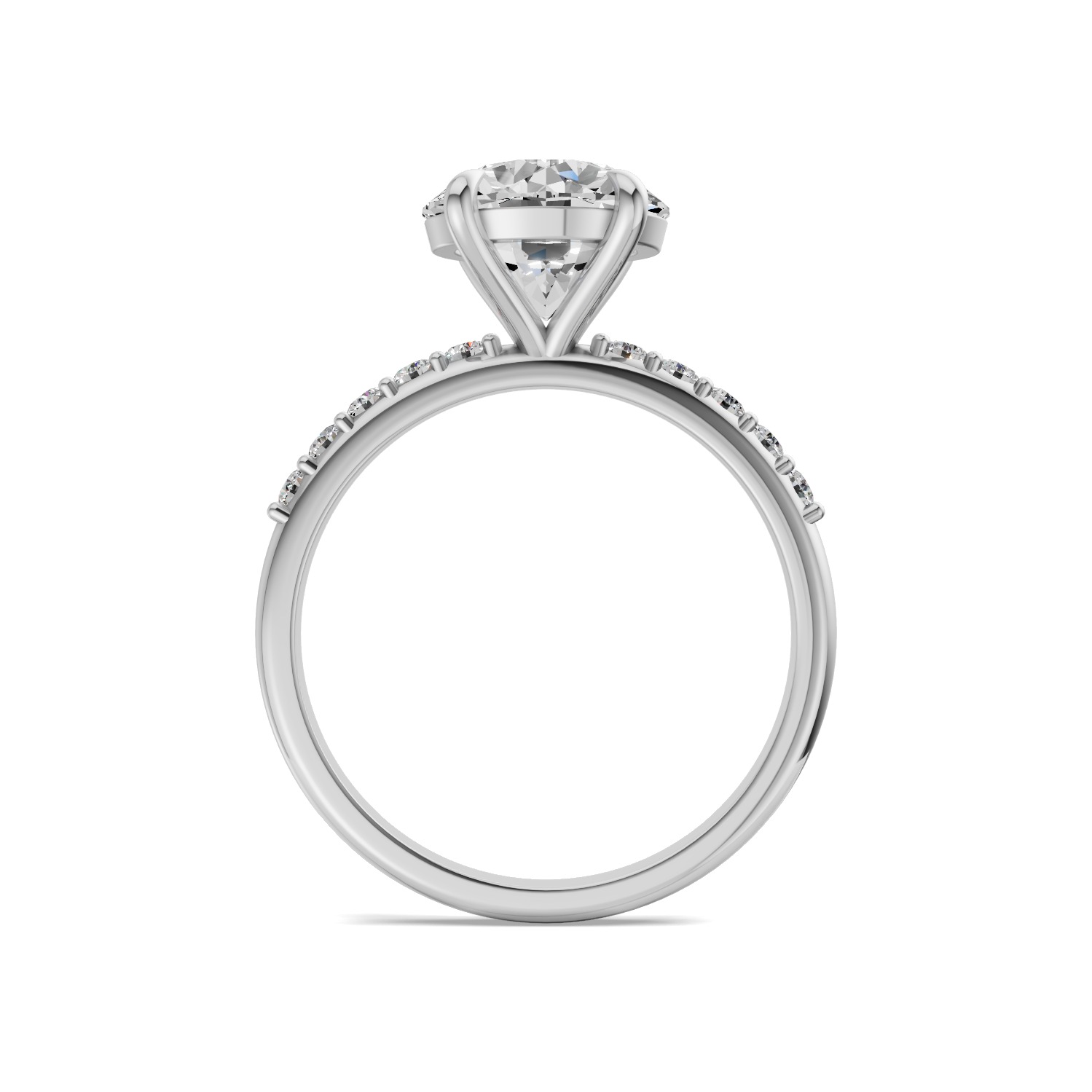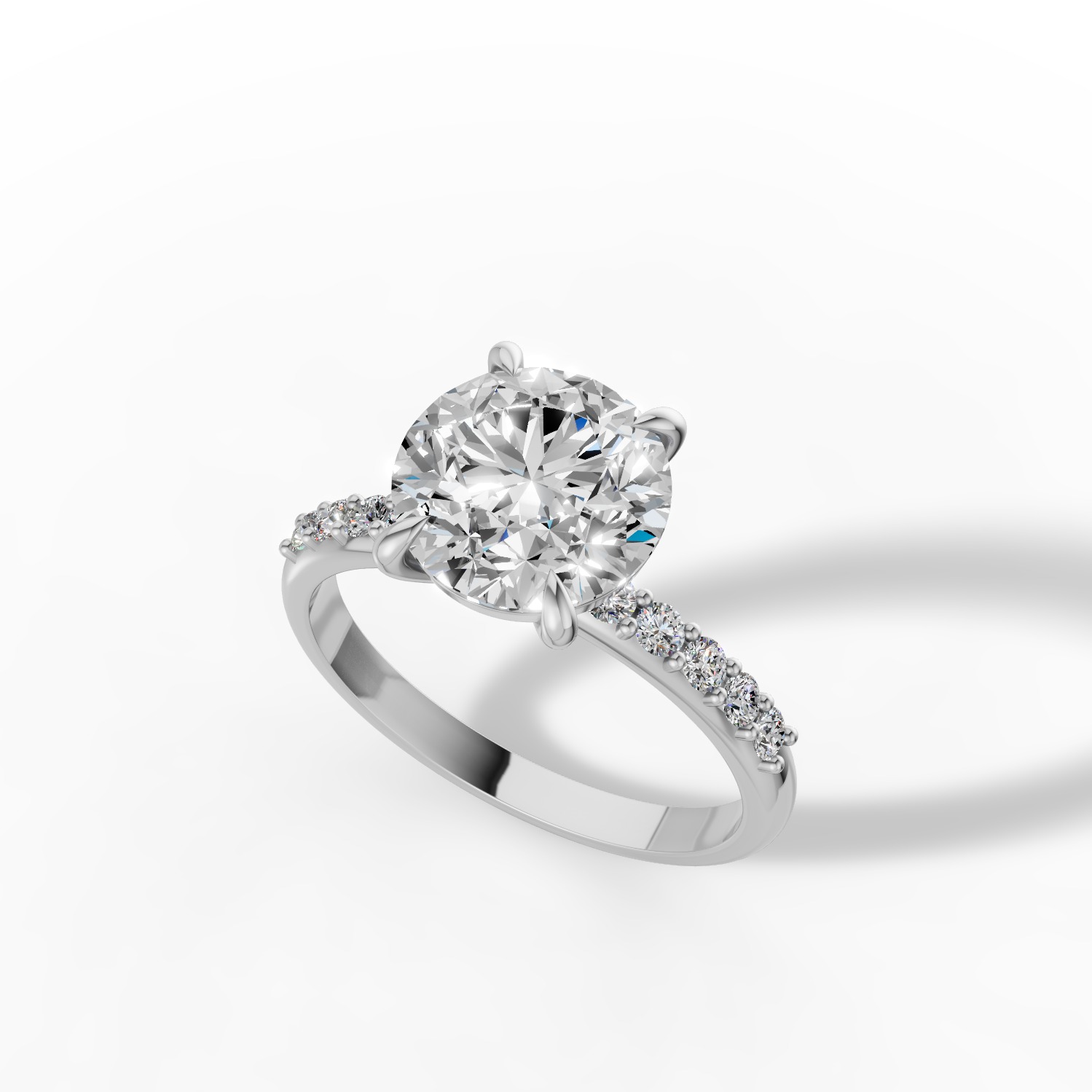 Model widoczny na zdjęciach prezentuje diament główny o masie 2 ct, lecz wszystkie parametry mogą zostać dostosowane do indywidualnych życzeń.