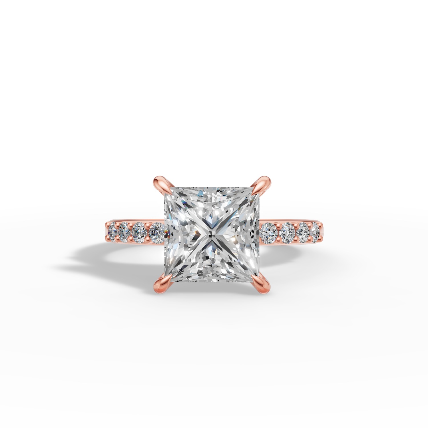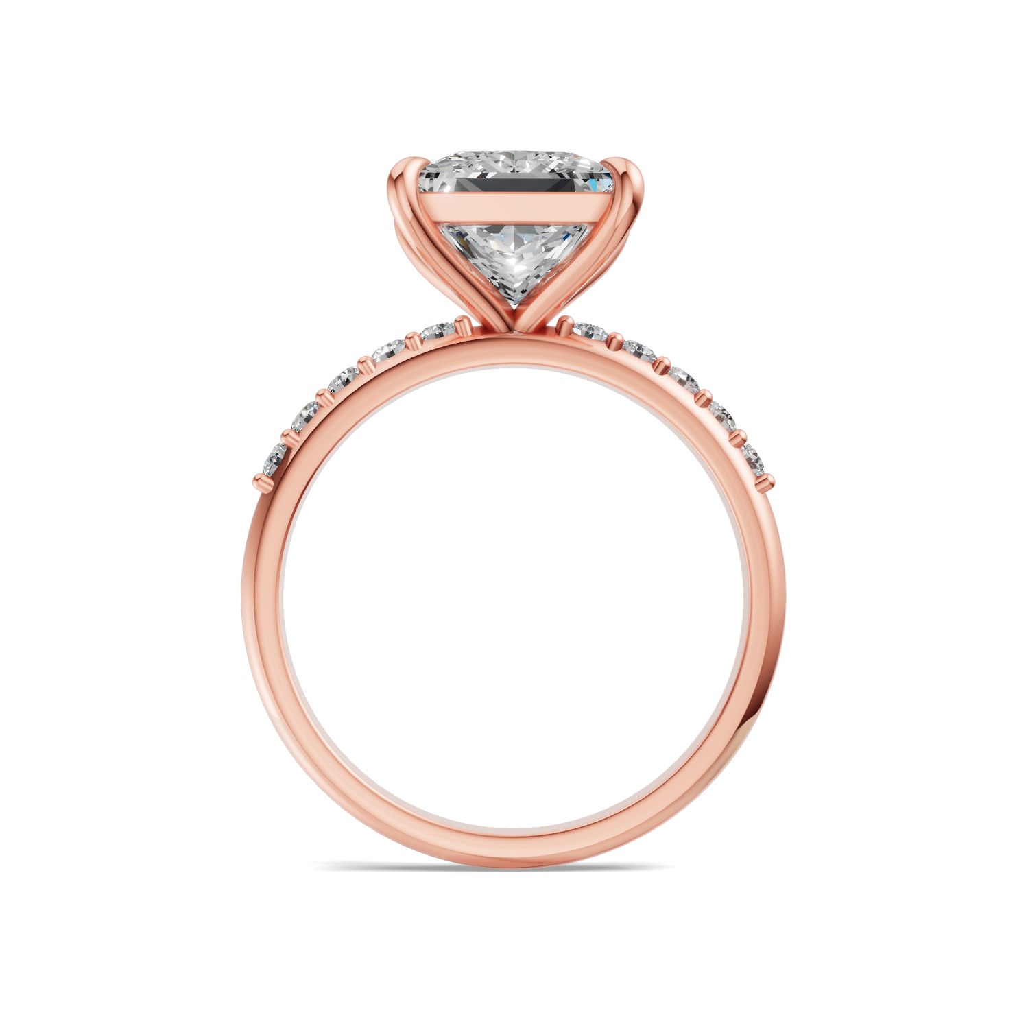 Model widoczny na zdjęciach prezentuje diament główny o masie 2 ct, lecz wszystkie parametry mogą zostać dostosowane do indywidualnych życzeń.