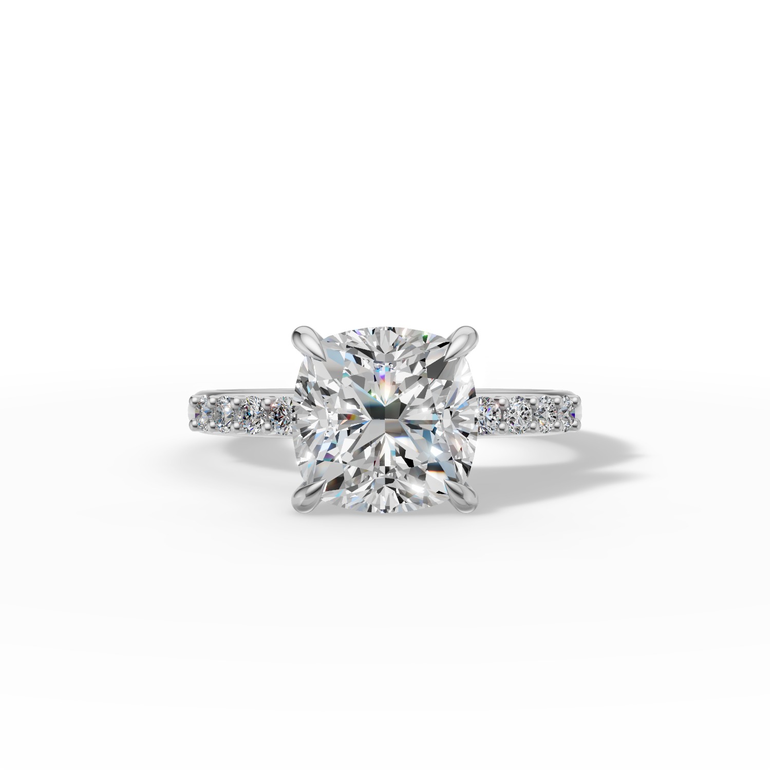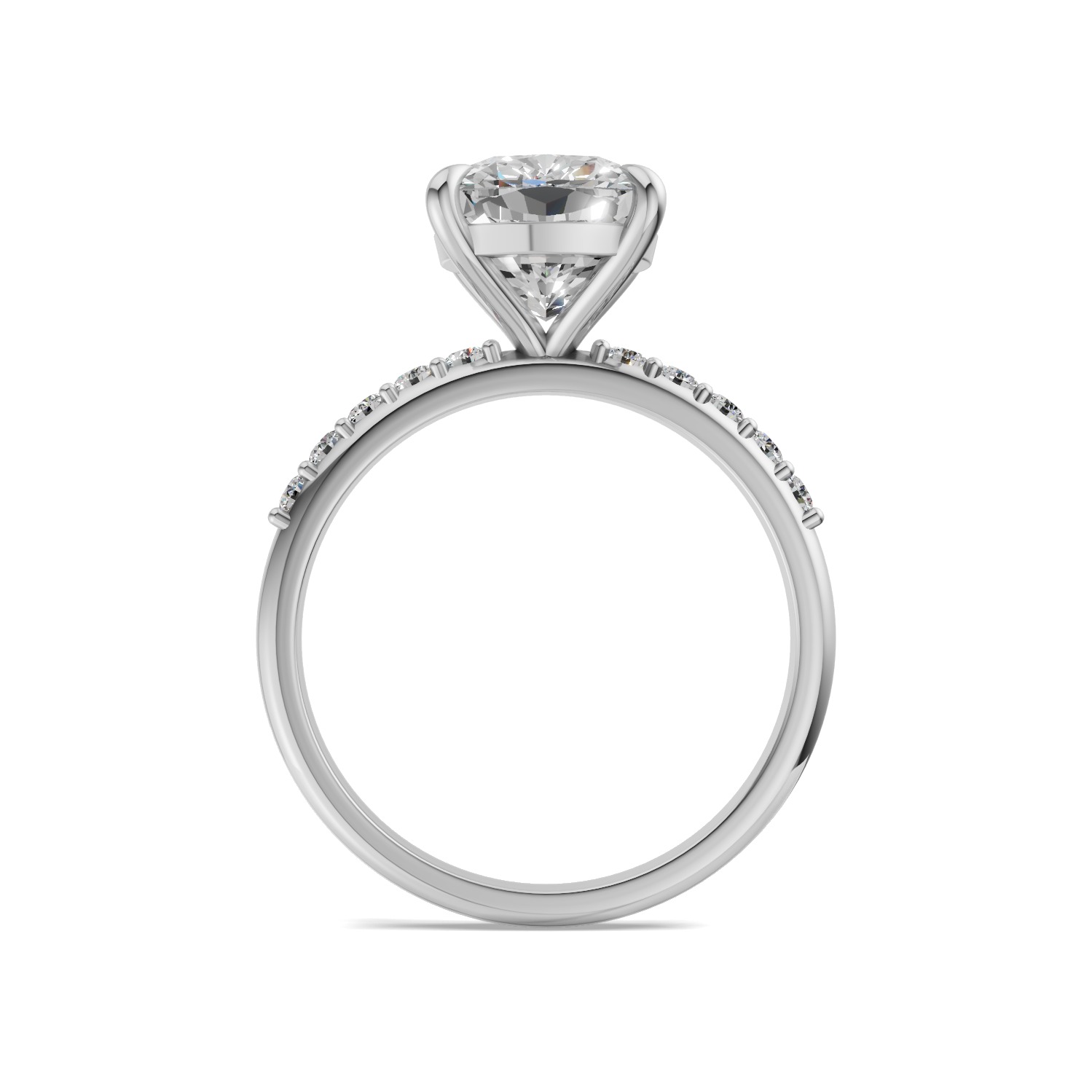 Model widoczny na zdjęciach prezentuje diament główny o masie 2 ct, lecz wszystkie parametry mogą zostać dostosowane do indywidualnych życzeń.