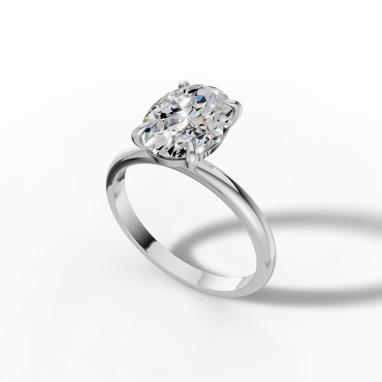 Pierścionek Selene zachwyca swoją prostotą i klasycznym pięknem. Centralny diament o szlifie owalnym przyciąga uwagę subtelnym blaskiem i eleganckimi proporcjami. To model, który łączy ponadczasową formę z delikatnym, kobiecym charakterem.