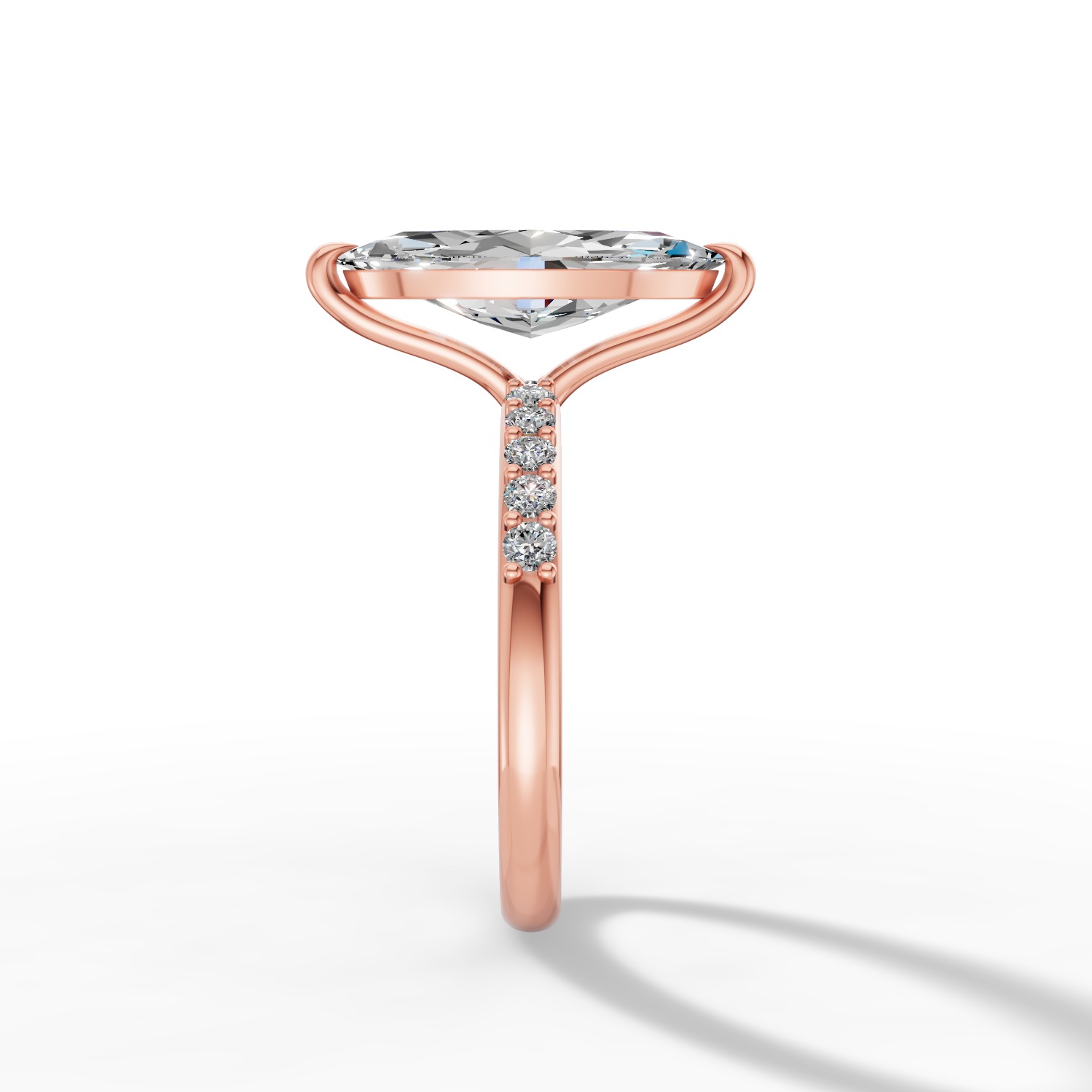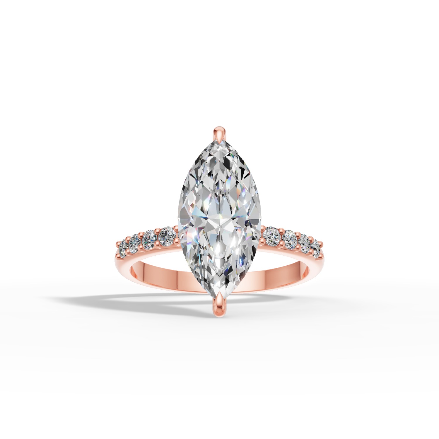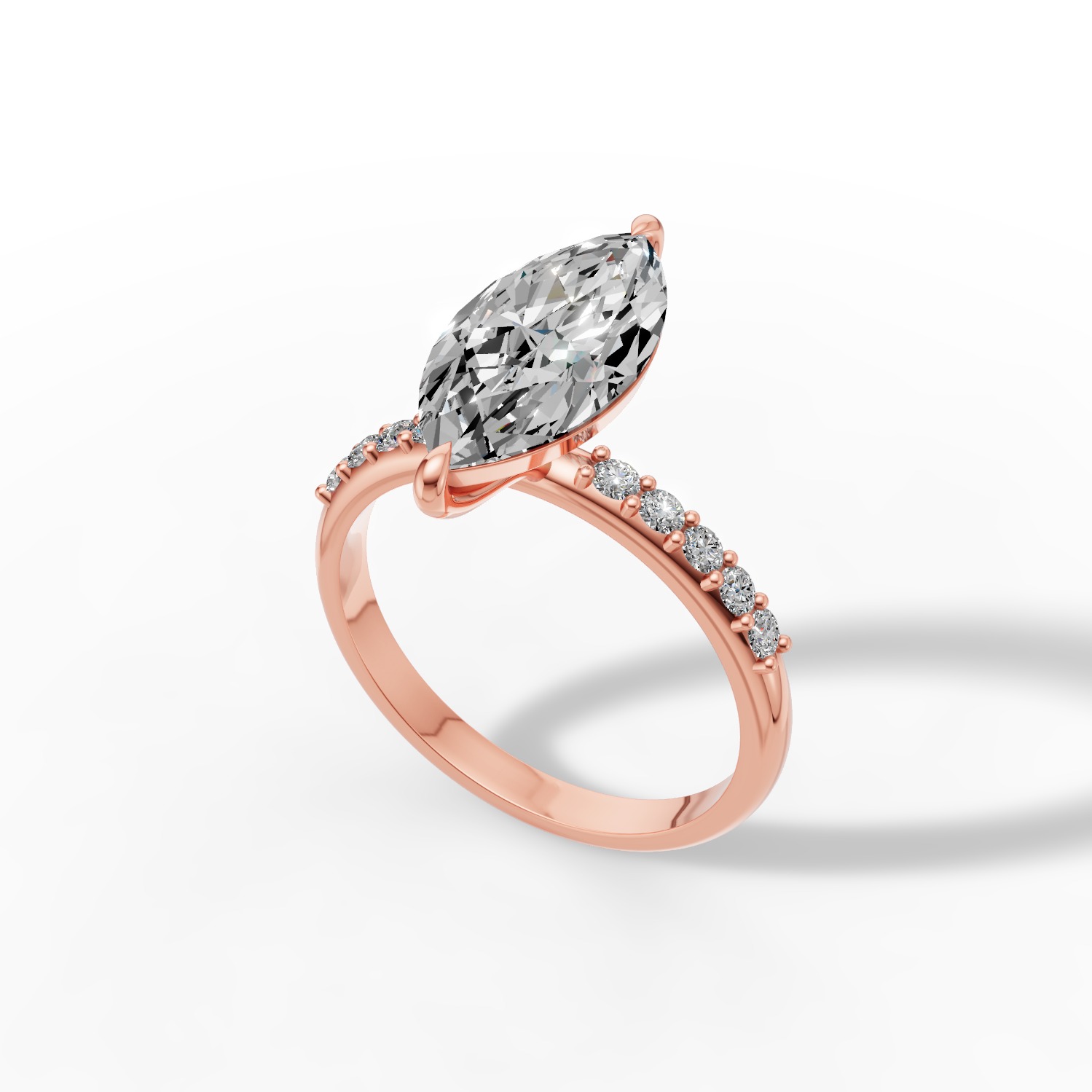 Pierścionek Seraphina został stworzony z myślą o kobietach, które cenią elegancję w najczystszej formie. Jego wydłużony kształt i harmonijna proporcja nadają mu lekkości, a subtelny blask sprawia, że zachwyca w każdym świetle. To wzór, który łączy klasykę z nowoczesnym wdziękiem – prosty, szlachetny i pełen kobiecego uroku. Diament o szlifie markiza osadzony w obrączce z różowego złota zachwyca prostotą i elegancją. Obrączkę uzupełnia dziesięć delikatnych diamentów dla jeszcze większego blasku.