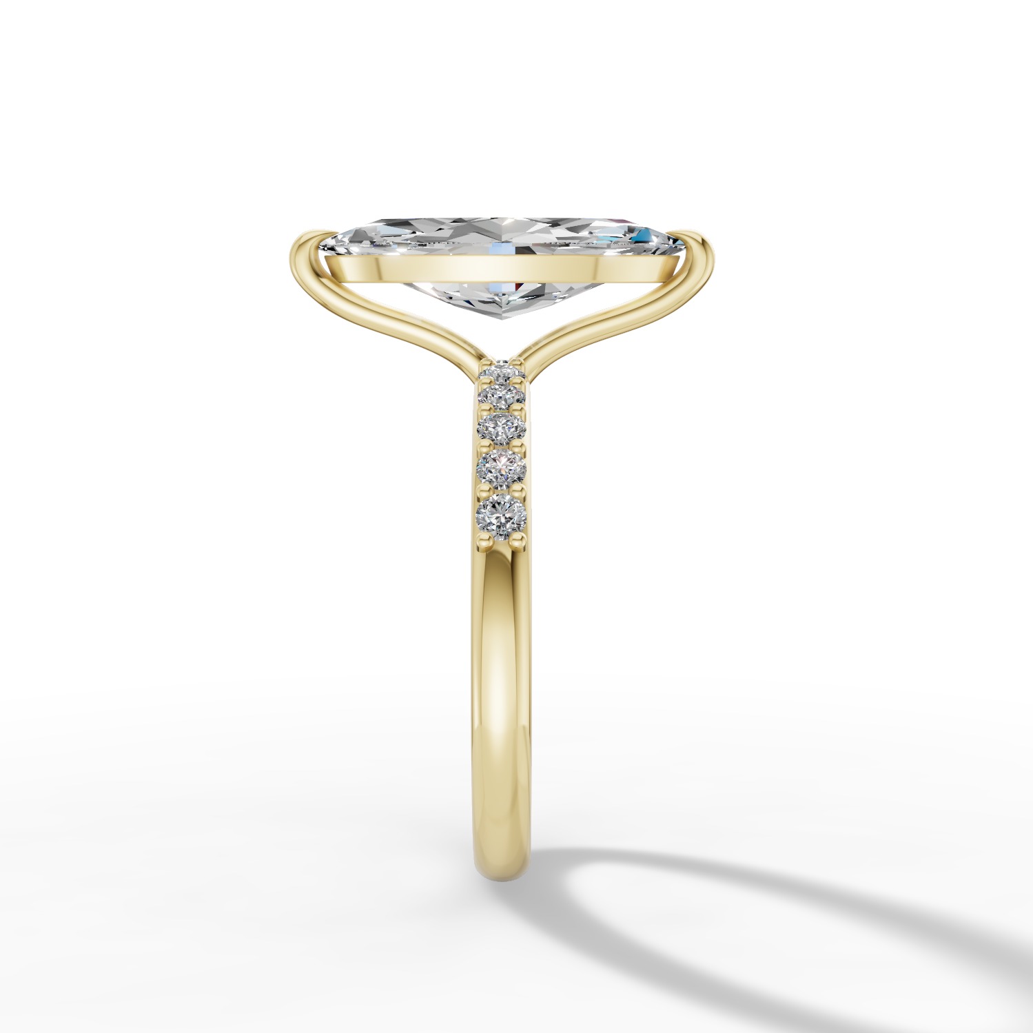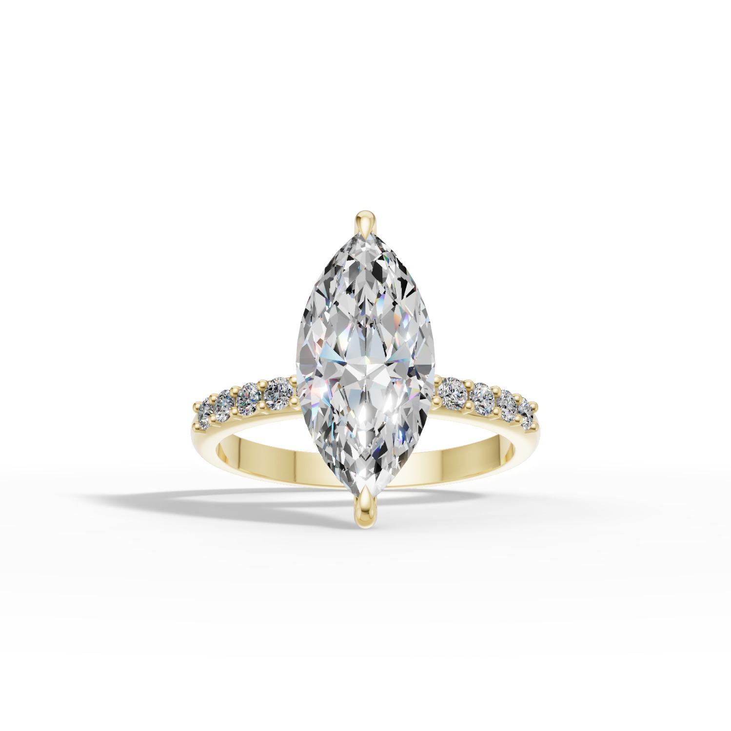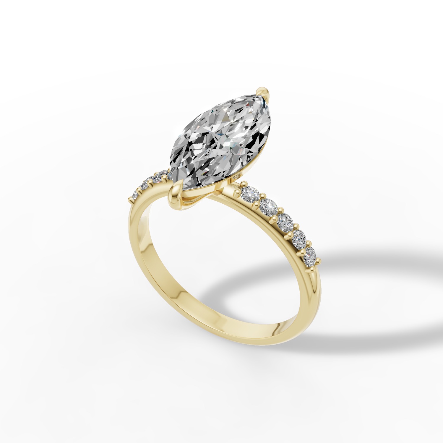Pierścionek Seraphina został stworzony z myślą o kobietach, które cenią elegancję w najczystszej formie. Jego wydłużony kształt i harmonijna proporcja nadają mu lekkości, a subtelny blask sprawia, że zachwyca w każdym świetle. To wzór, który łączy klasykę z nowoczesnym wdziękiem – prosty, szlachetny i pełen kobiecego uroku. Diament o szlifie markiza osadzony w obrączce z żółtego złota zachwyca prostotą i elegancją. Obrączkę uzupełnia dziesięć delikatnych diamentów dla jeszcze większego blasku.